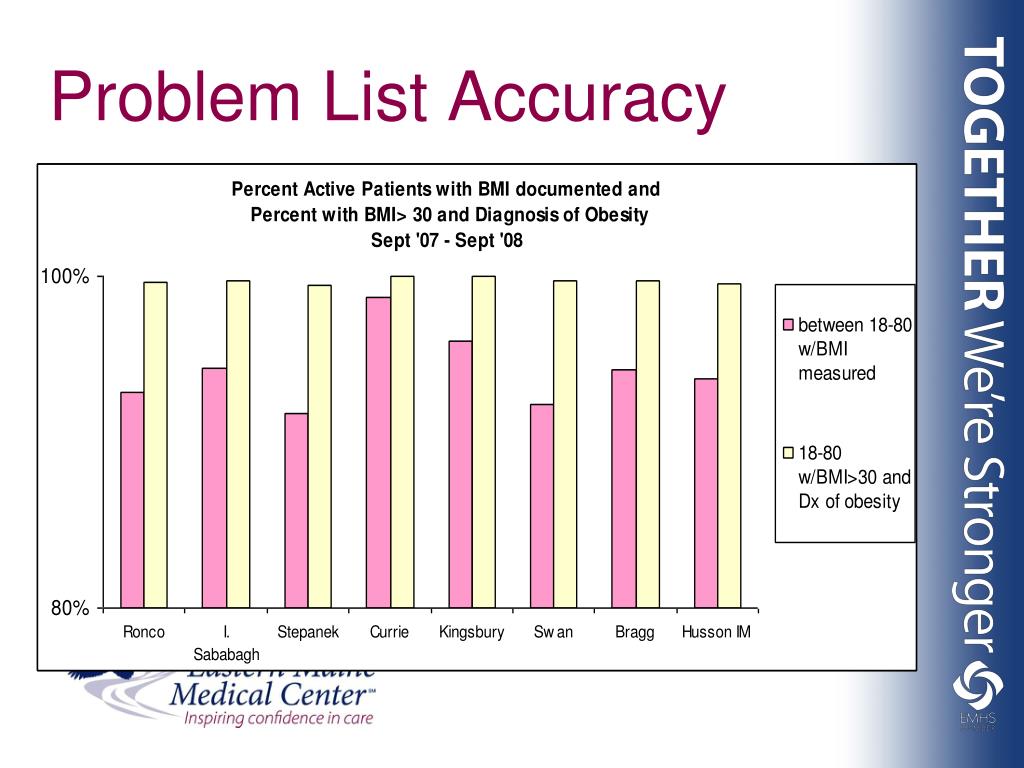 Internal Medicine Physician Specific Data • By 2007 we began to look at providers at our internal medicine office in an unblinded fashion • We began monthly quality meetings in our office