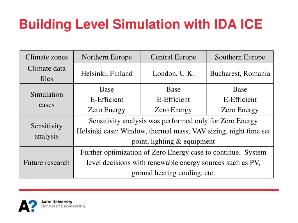 Towards Net Zero Energy Buildings: Dynamic Simulation of office Building in Three Climate Zones of EuropeNusrat Jung1,2, Jari Shemeikka1, Risto Lahdelma2, Jyri Nieminen11VTT Technical Research Centre of Finland2Aalto University, Department of Energy Technology, Finland EES Annual Seminar 2013, Aalto