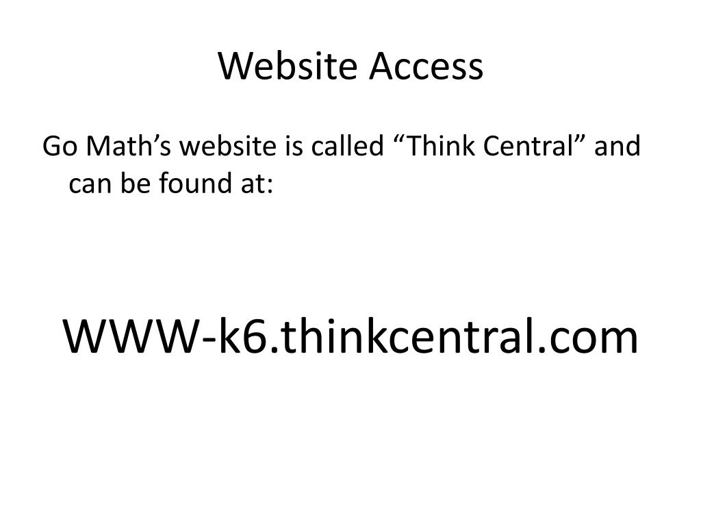 Website Access Go Math’s website is called “Think Central” and can be found at: WWW-k6.thinkcentral.com