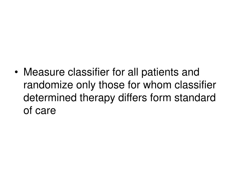 Measure classifier for all patients and randomize only those for whom classifier determined therapy differs form standard of care