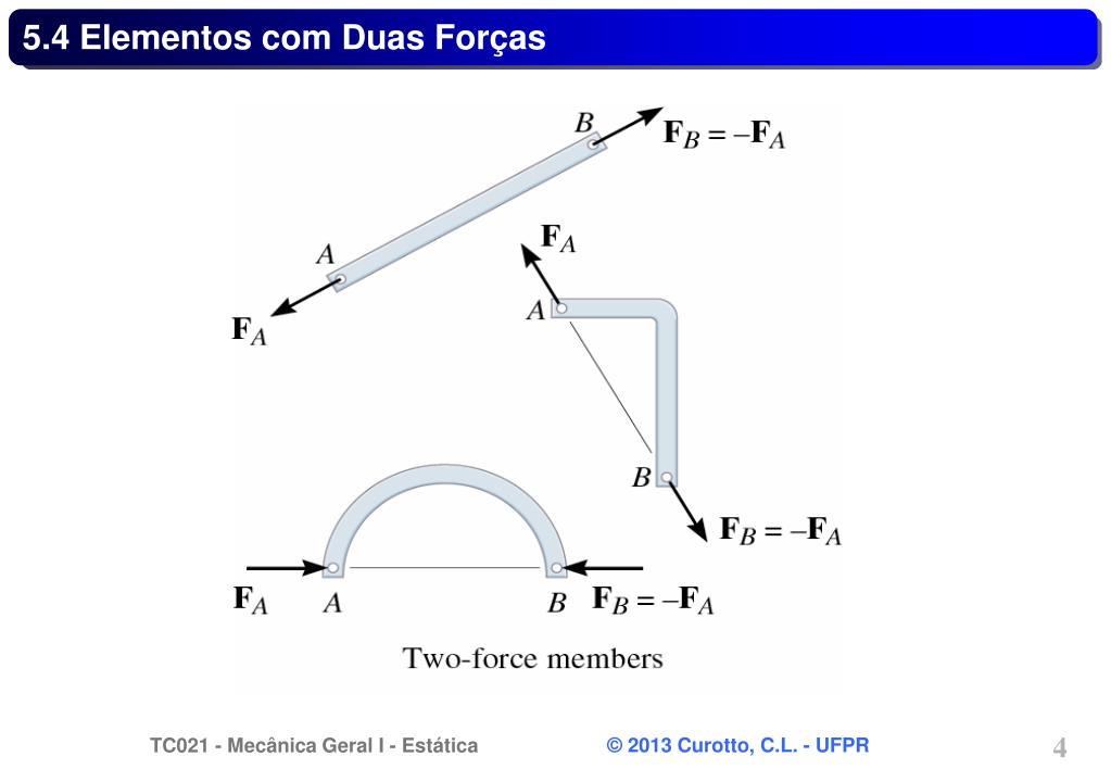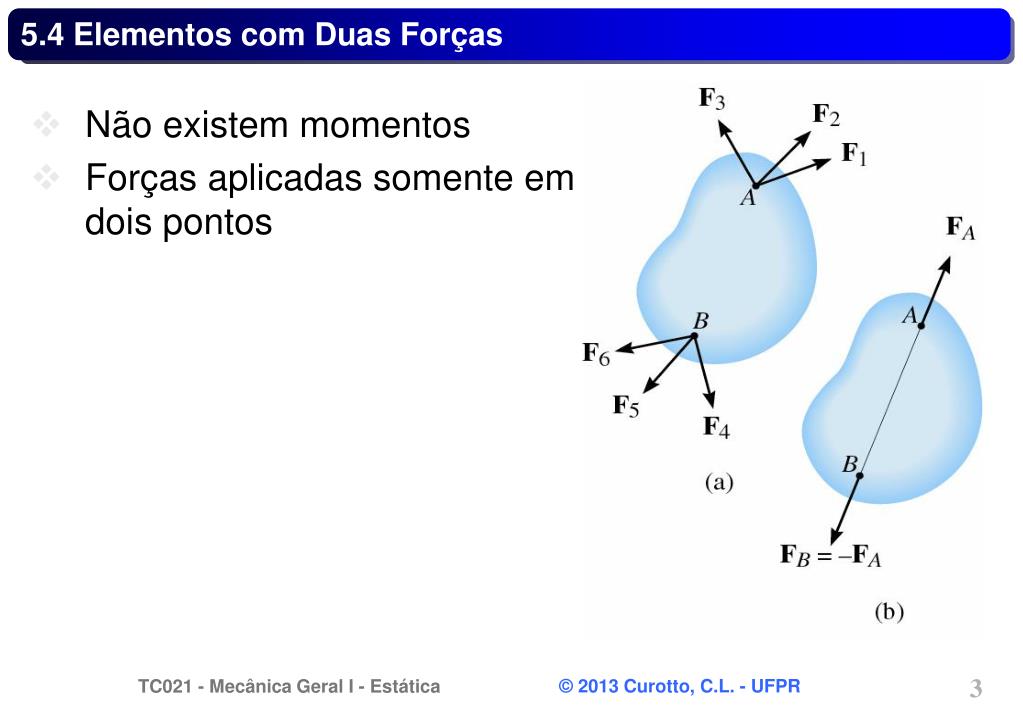 5.4 Elementos com Duas Forças • Não existem momentos • Forças aplicadas somente em dois pontos