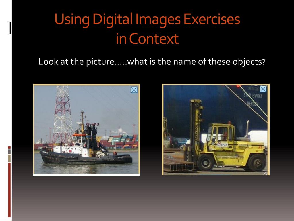Using Digital Images Exercises in Context Look at the picture repeat the name with the instructor