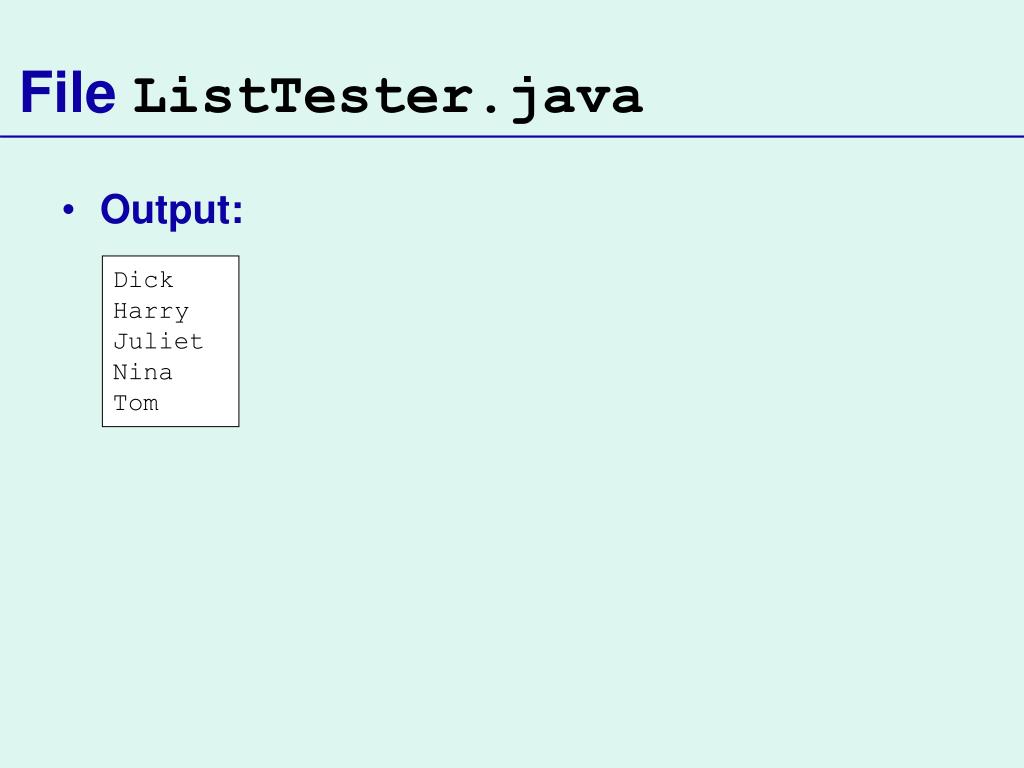 File ListTester.java • Output: DickHarryJulietNinaTom