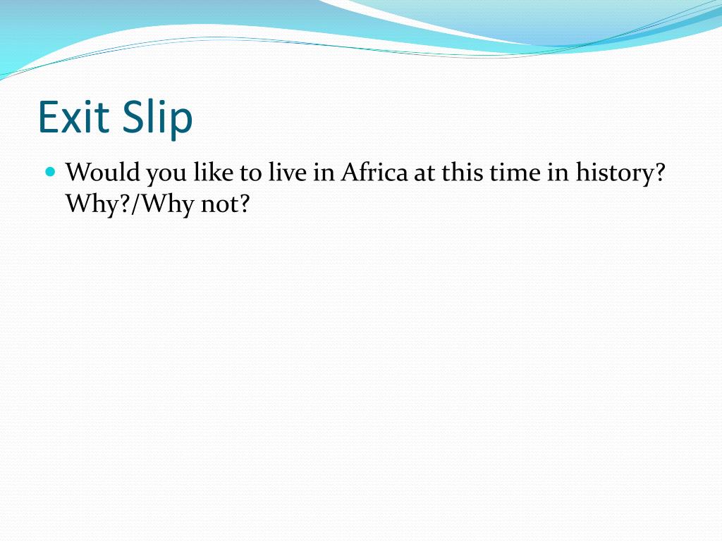 Exit Slip • Would you like to live in Africa at this time in history? Why?/Why not?