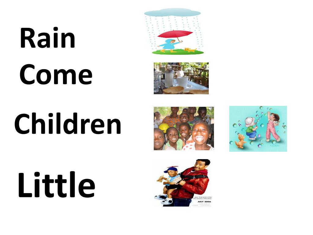 Rain,rain, go away Come again another day. Little children want to play, Rain,rain,go away. Rain,rain,go away
