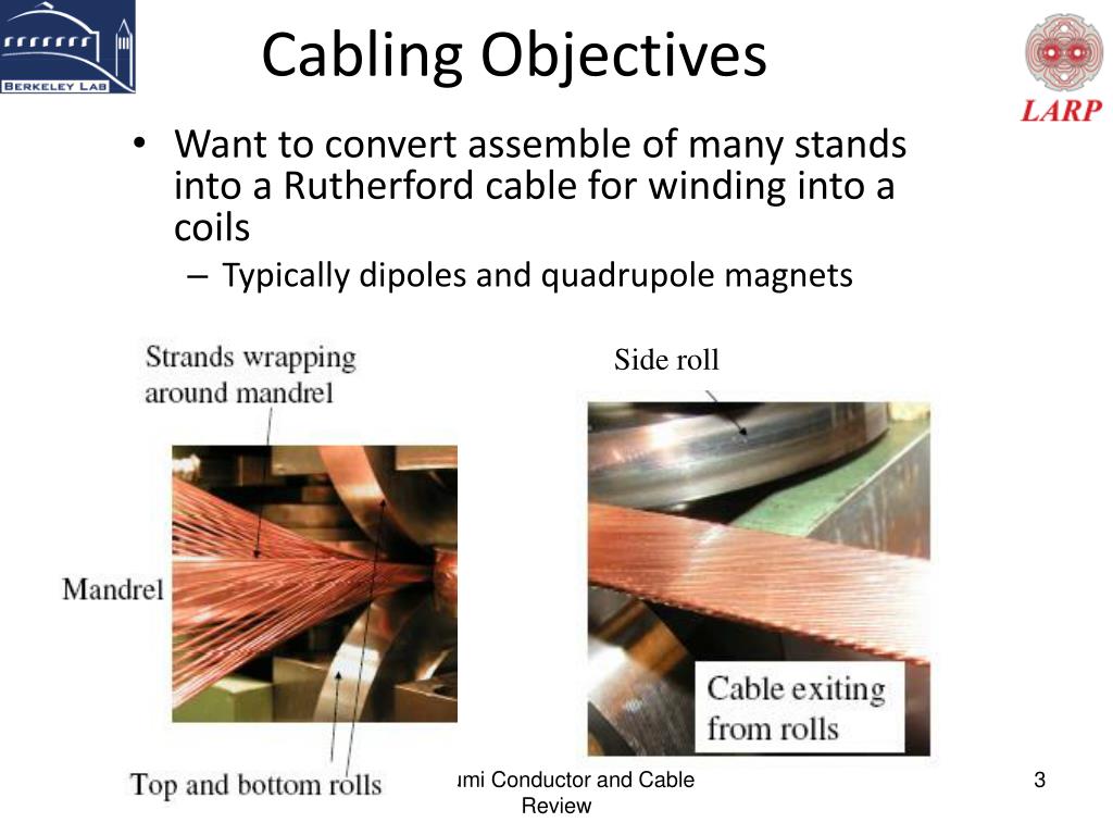 Cabling Objectives • Want to convert assemble of many stands into a Rutherford cable for winding into a coils • Typically dipoles and quadrupole magnets Side roll HiLumi Conductor and Cable Review