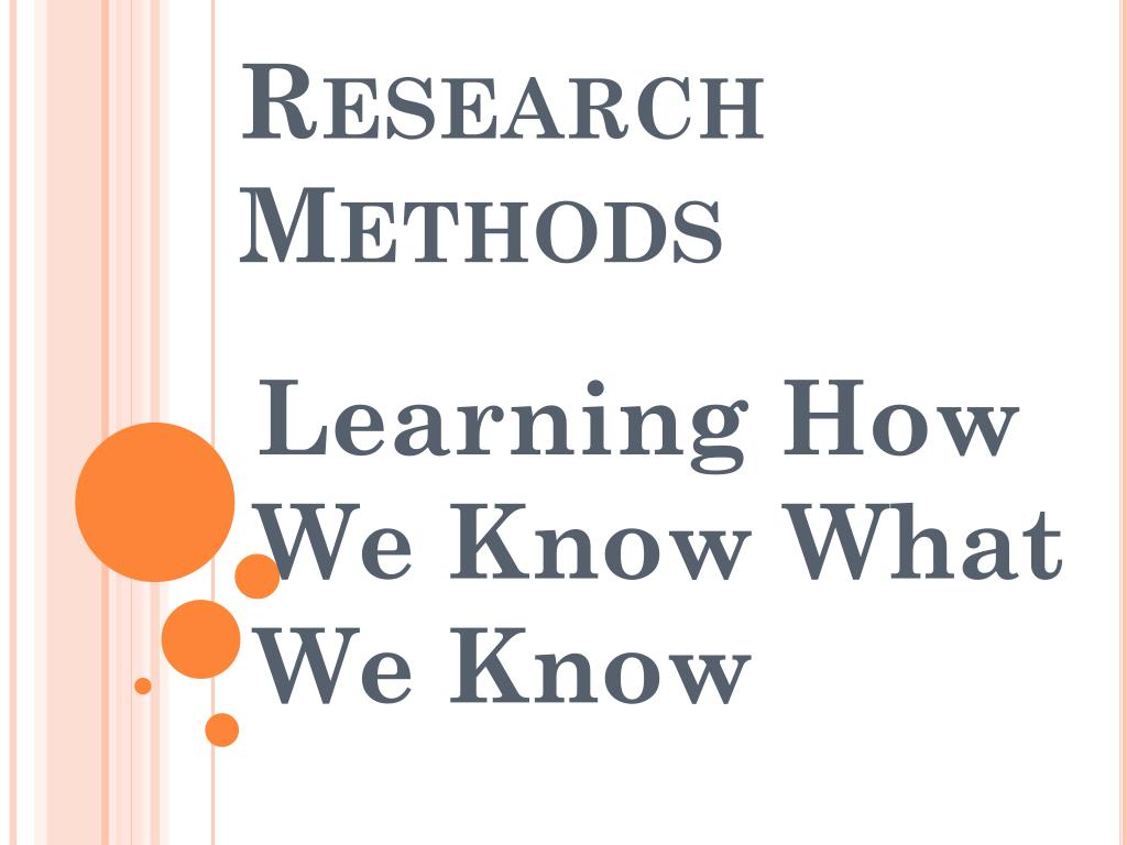 Research Methods. Learning How We Know What We Know. Why Scientific Method is Important. Avoids pitfalls in human logic: Human intuition Hindsight bias Overconfidence Confirmation bias False consensus effect Promotes critical thinking & healthy skepticism