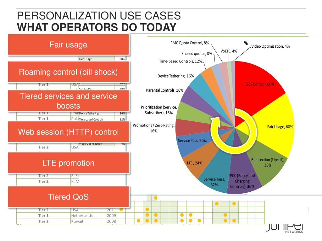Personalization use caseswhat operators do today Fair usage Roaming control (bill shock) Tiered services and service boosts Web session (HTTP) control LTE promotion Tiered QoS