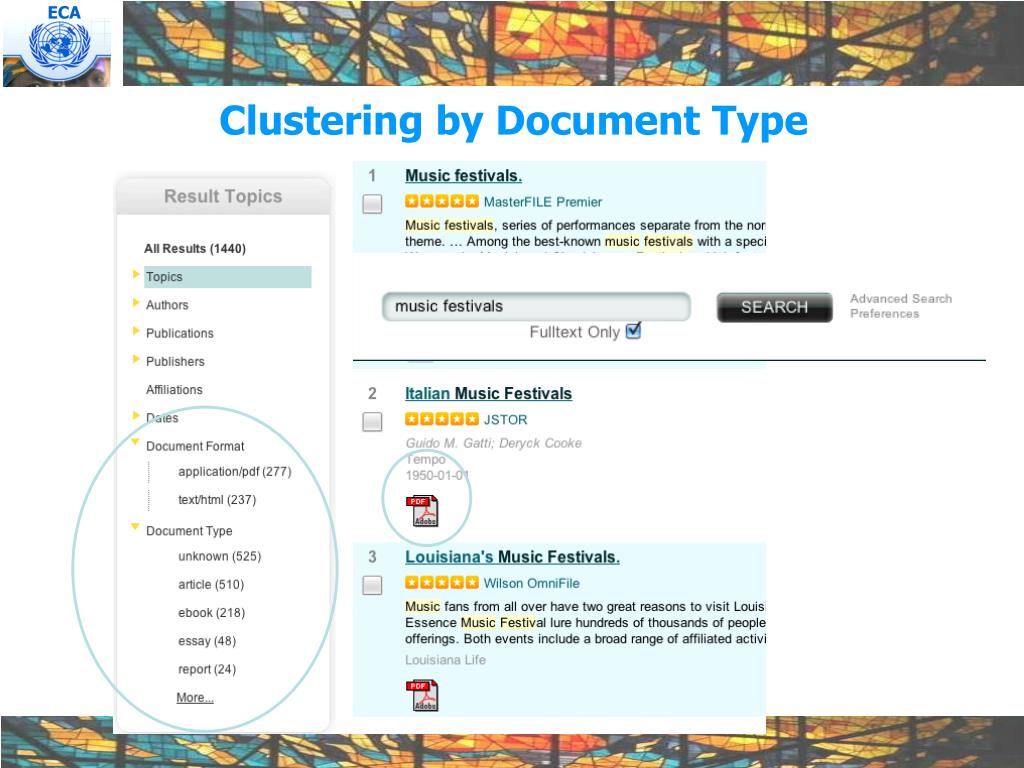 Results Page • Incremental Results • Spell Check • Ranked Results • Collection Status • Sort/Refine/Limit • Intelligent Clustering • Email/Print