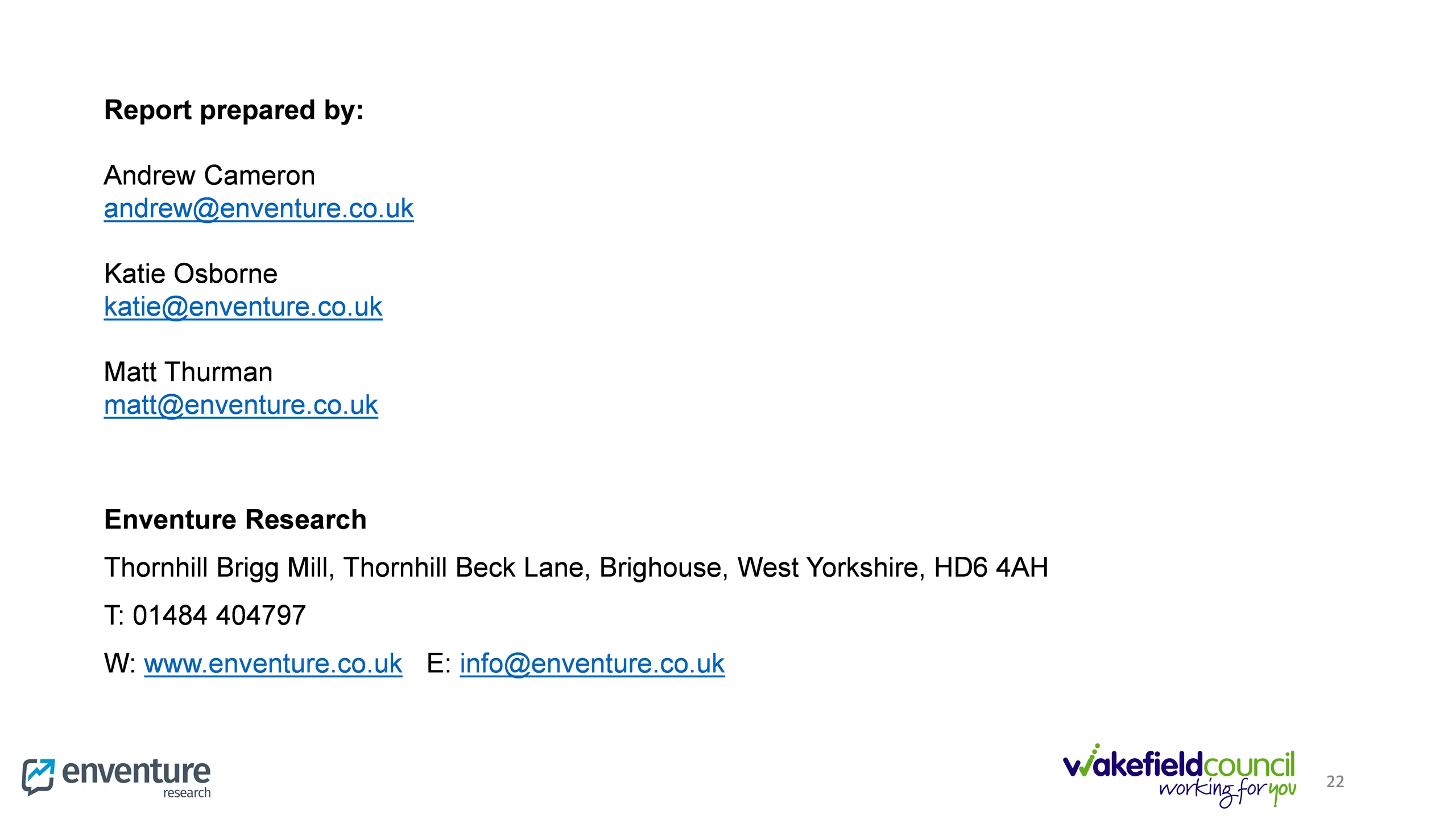 Report prepared by: Andrew Cameron andrew@enventure.co.uk Katie Osborne katie@enventure.co.uk Matt Thurman matt@enventure.co.uk Enventure Research Thornhill Brigg Mill, Thornhill Beck Lane, Brighouse, West Yorkshire, HD6 4AH T: 01484 404797 W: www.enventure.co.uk E: info@enventure.co.uk 22