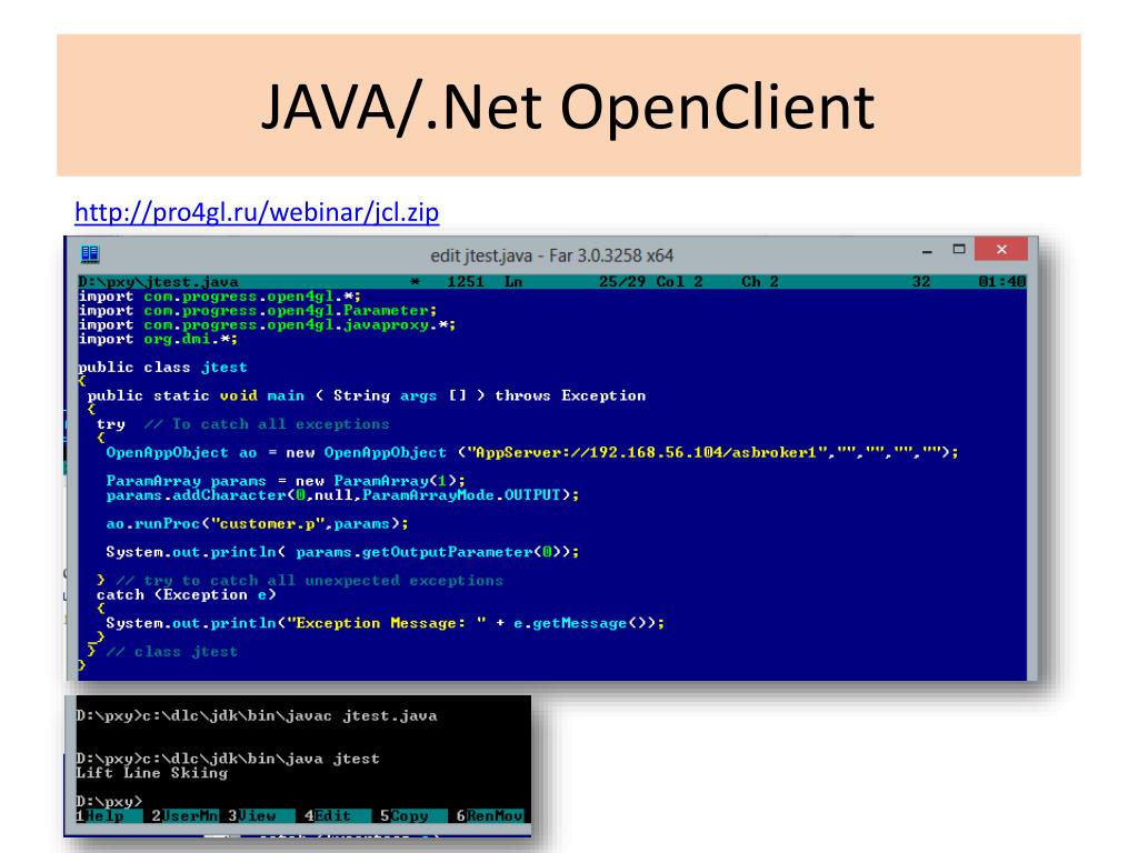 JAVA/.NetOpenClient http://pro4gl.ru/webinar/jcl.zip