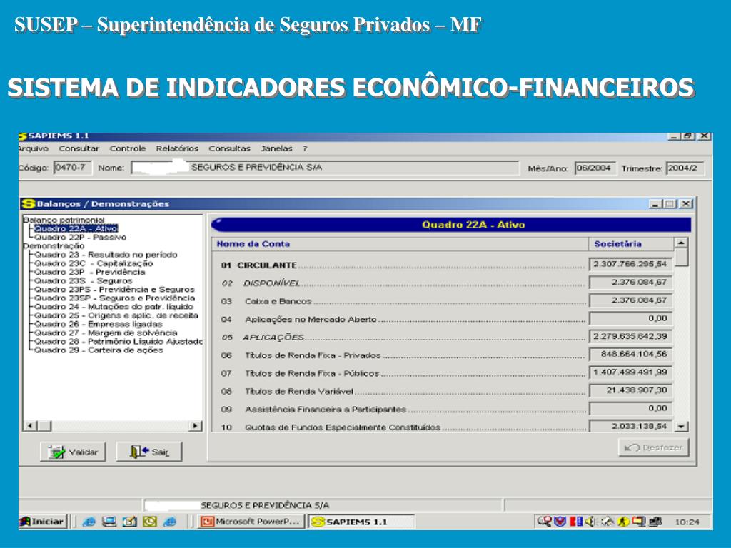 SUSEP – Superintendência de Seguros Privados – MF SISTEMA DE INDICADORES ECONÔMICO-FINANCEIROS