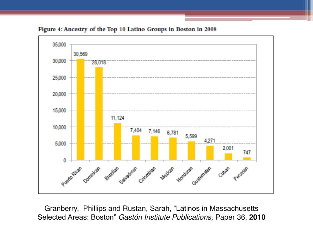 Granberry, Phillips and Rustan, Sarah, “Latinos in Massachusetts Selected Areas: Boston” GastónInstitutePublications, Paper 36, 2010
