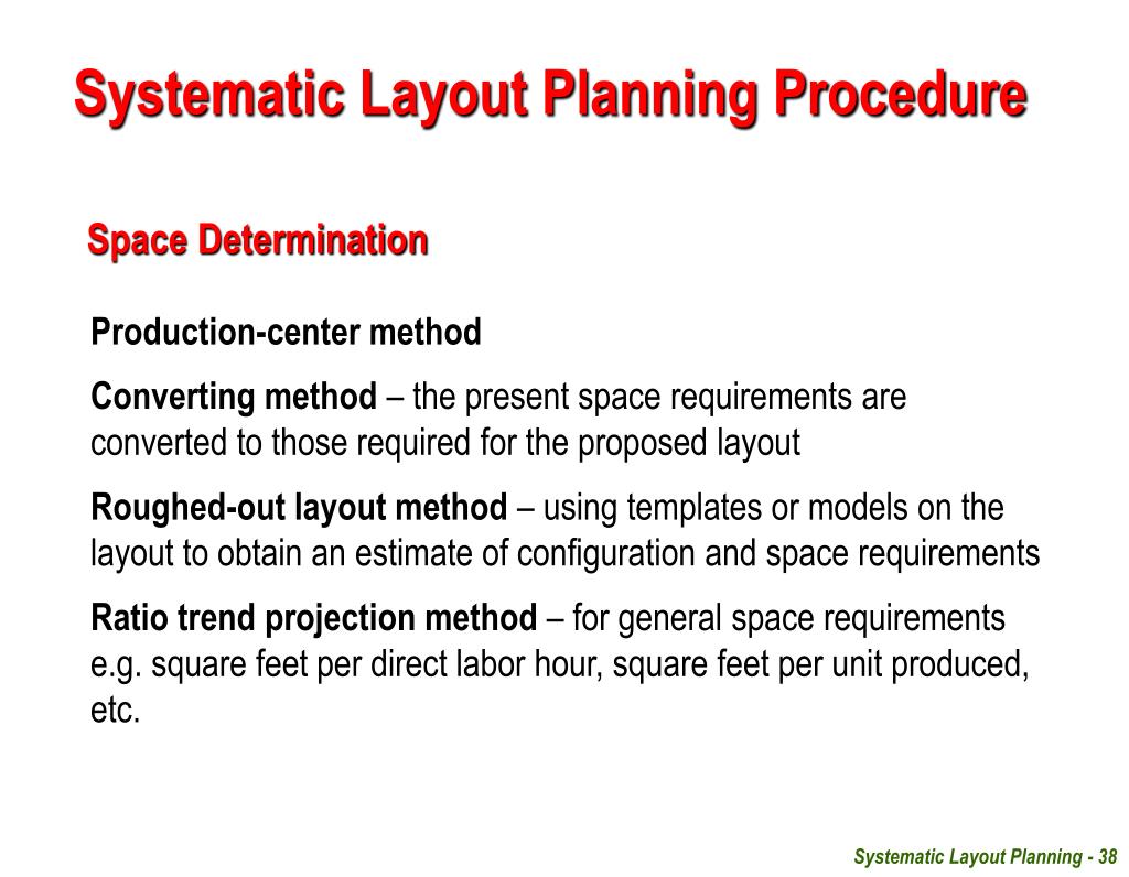 Systematic Layout Planning ProcedureFlow and Activity Analysis Layout Types Systematic Layout Planning - 24