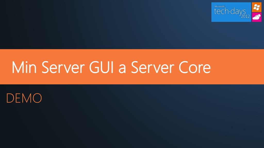 Minimal Server Interface • Je to Server s GUI… • …ale bez Windows Explorer a Internet Explorer • Nabízí některé výhody Server Core pro ty nástroje, které nemohou plně spolupracovat se Server Core • Umožňuje posun k serverům s menším množstvím kódu • Odstraněná závislost na Shell a Internet Explorer • Umožňuje úplnou vzdálenou správu • Vyšší dostupnost