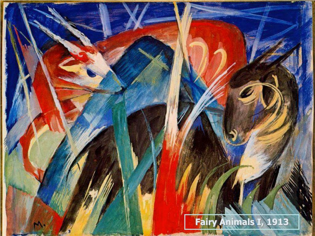 FRANZ MARK. "הפרש הכחול". פרנץ מארק (8 בפברואר 1880 - 4 במרץ 1916), צייר גרמני, ממייסדי הפרש הכחול, תנועת האקספרסיוניזם הגרמני שירשה את מקומה של קבוצת "הגשר". מארק שילב ביצירותיו דמיון ומציאות, וברבים מציוריו, למרות הצבעוניות העזה, הוא עוסק במוות, גם של אנשים וגם של בעלי חיים.
