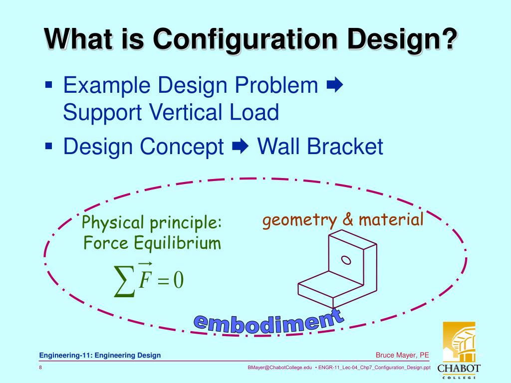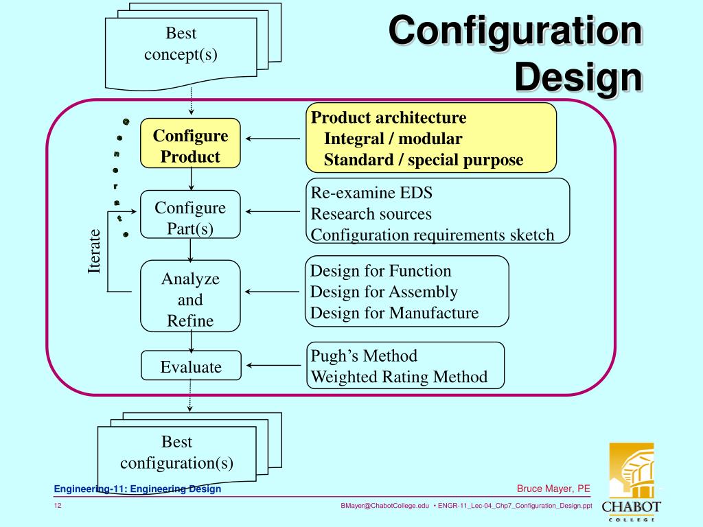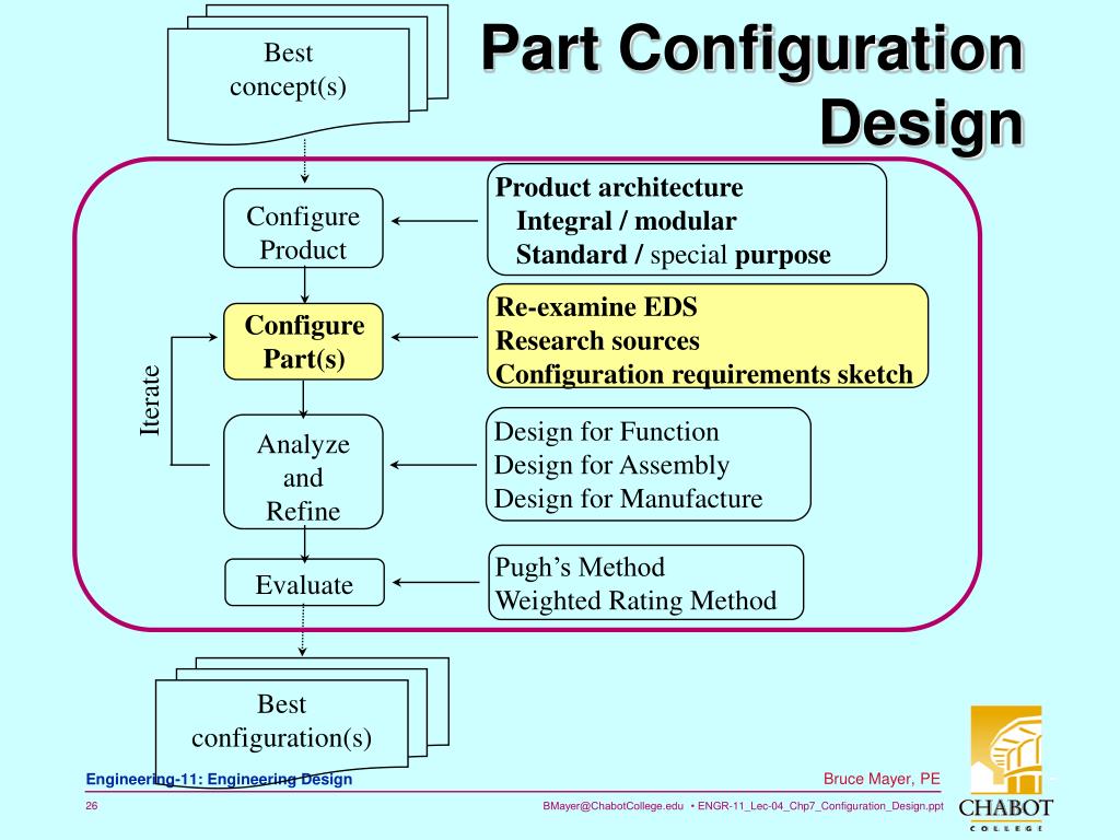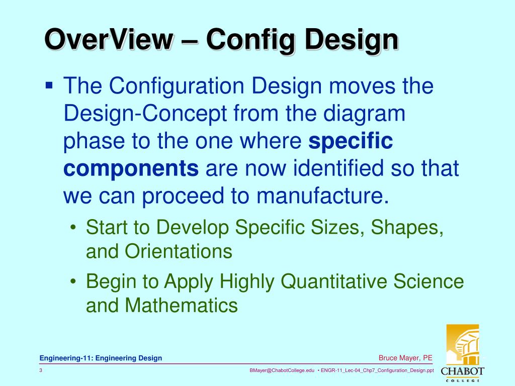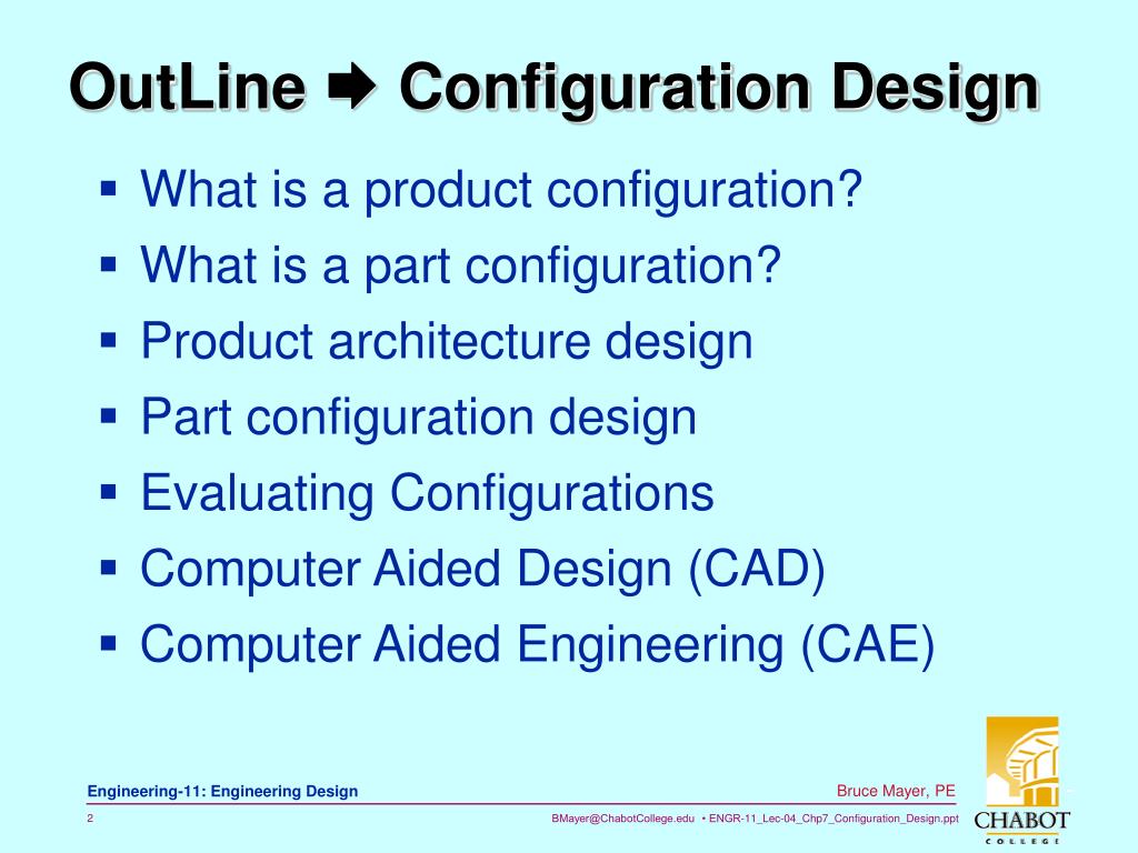 Engineering 11. Configuration Design. Bruce Mayer, PE Licensed Electrical & Mechanical Engineer BMayer@ChabotCollege.edu. OutLine Configuration Design. What is a product configuration? What is a part configuration? Product architecture design Part configuration design
