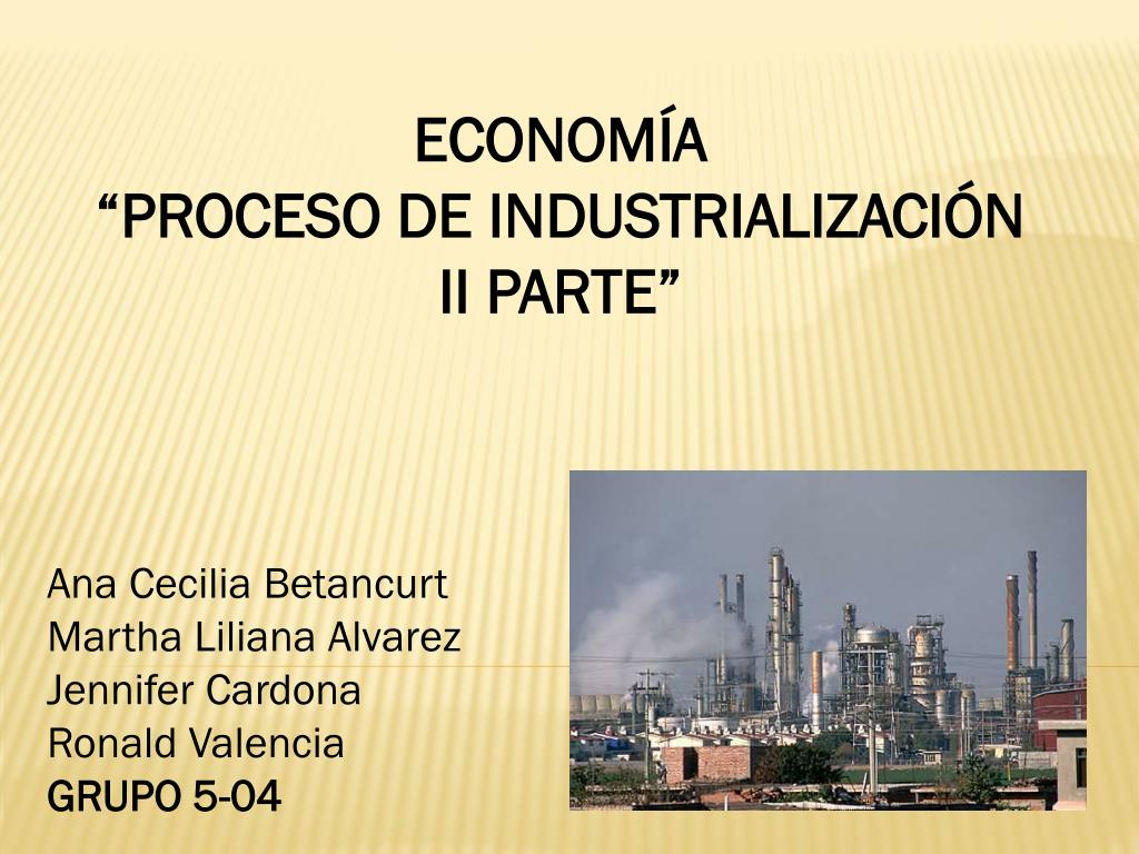 ECONOMÍA “PROCESO DE INDUSTRIALIZACIÓN II PARTE” Ana Cecilia Betancurt Martha Liliana Alvarez Jennifer Cardona Ronald Valencia GRUPO 5-04
