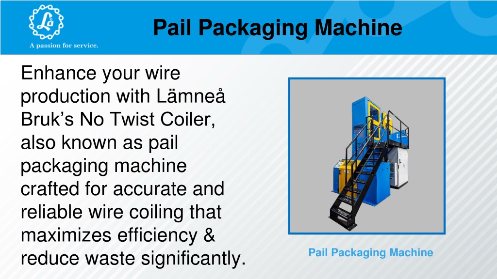 Pail Packaging Machine Pail Packaging Machine Enhance your wire production with Lämneå Bruk’s No Twist Coiler, also known as pail packaging machine crafted for accurate and reliable wire coiling that maximizes efficiency & reduce waste significantly.