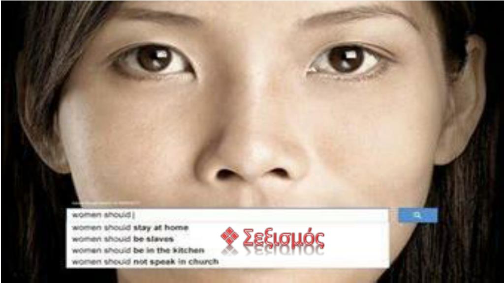 Ο ΣΕΞΙΣΜΟΣ ΣΤΟ ΧΡΟΝΟ Η γυναίκα στην αρχαία ΕλλάδαΟ Περικλής καθορίζει προς το τέλος του περίφημου επιταφίου του, την θέση και την συμπεριφορά των γυναικών της εποχής του. Ούτε λίγο ούτε πολύ, λέει σε αυτές να φροντίζουν να μην ακουσθεί το όνομά τους, ούτε για καλό ούτε για κακό μεταξύ των ανδρών. Τις περιορίζει δηλαδή, με τον πιο κατηγορηματικό τρόπο στην ανωνυμία του γυναικωνίτη. Προσωπικότητα περιορισμένη πνευματικά, όπως πίστευαν οι αρχαίοι, η γυναίκα έχει σε όλη την περίοδο της αρχαιότητας, εκτός ελαχίστων περιπτώσεων, έναν ασφυκτικά στενό κύκλο δραστηριότητας, ένα λιλιπούτειο βασίλειο, το σπίτι της και την φροντίδα του. Αντίληψη που ξεκάθαρα διατυπώνει ο Ξενοφώντας στον «Οικονομικό» του. Παρουσιάζει εκεί το πορτραίτο της τέλειας Αθηναίας δέσποινας, που παραμένει αναλλοίωτο μέχρι την έλευση του Χριστιανισμού.Παλιότερα, οι γυναίκες και οι άντρες δεν είχαν τα ίδια δικαιώματα. Οι γυναίκες είχαν ελάχιστες ατομικές ελευθερίες, καθώς υποτιμούνταν νοητικά και ψυχικά απ’ το κράτος και το αντρικό φύλο. Στην ουσία, η γυναίκα το μόνο που έκανε ήταν να ασχολείται με τις δουλειές του σπιτιού και να αναθρέφει τα παιδιά της. Δεν εργαζόταν και δεν έβγαινε απ’ το σπίτι και συνεπώς ο λόγος της δεν έχει καμιά ισχύ μπρός στο λόγο του άντρα της. Αντιθέτως, ο άντρας ήταν συνεχώς έξω, εργαζόταν και έλεγχε το σπίτι. Στις μέρες μας ,ο ρατσισμός μεταξύ των δύο φύλων δεν είναι τόσο αισθητός, αλλά αυτό δε σημαίνει πως δεν υπάρχει κιόλας. Μέσα στην οικογένεια, τα αγόρια είναι πιο ελεύθερα από ότι τα κορίτσια, καθώς βγαίνουν περισσότερο έξω και αργούν να γυρίσουν στο σπίτι. Τα περισσότερα κορίτσια πρέπει συνεχώς να δίνουν αναφορά στους γονείς τους για την κάθε τους κίνηση. Ακόμη και τα παιχνίδια που παίζουν τα παιδιά, τα προγυμνάζουν για το τι θα ακολουθήσει αργότερα. Τα αγόρια παίζουν συνήθως πολεμικά παιχνίδια στον υπολογιστή, ενώ τα κορίτσια παίζουν με κούκλες και κουζινικά. Αυτό με λίγα λόγια μας δείχνει πως τα κορίτσια προορίζονται για να κάνουν οικογένεια και να ασχολούνται μ αυτήν, υποταγμένα στους άντρες τους, ενώ τα αγόρια πρέπει να είναι σκληραγωγημένα για να υπερασπίζονται την οικογένειά τους, ως «αρχηγοί» της.