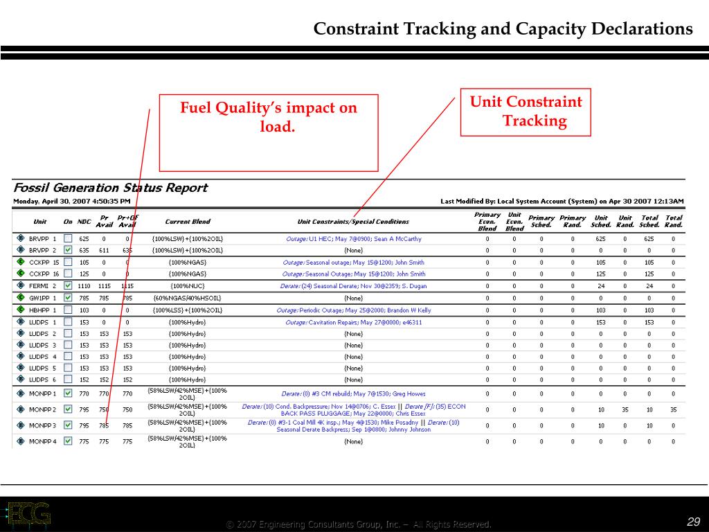 Constraint Tracking and Capacity Declarations Unit Constraint Tracking Fuel Quality’s impact on load.