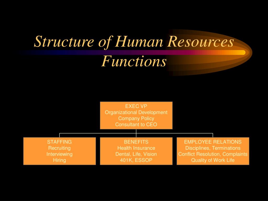 Sample Human Resources Jobs • EVP, HR * Regional HR Manager • Training & Education Director * Staffing Specialist • Corporate Training Specialist non-exempt • Training Assistant exempt • Manager, Payroll * Benefits Assistant • Manager, Benefits * Staffing Assistant • Manager, Compensation * Labor Relations Specialist • HRIS Administrator