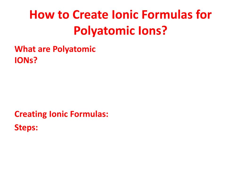 How to Create Ionic Formulas for Polyatomic Ions? What are Polyatomic IONs? Creating Ionic Formulas: Steps: