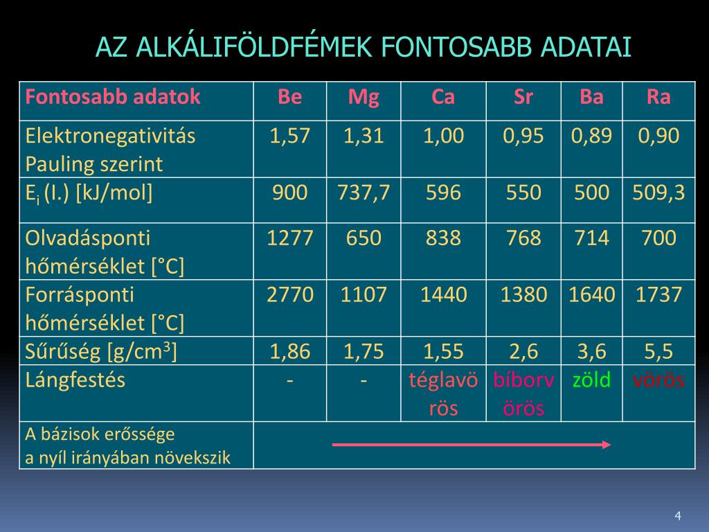 Be Mg Ca Sr Ba Ra alkáliföldfémek