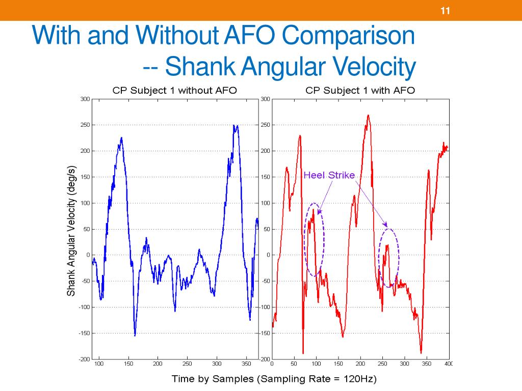 Validation Experiments on Children with CP • Experiment Setup • 4 CP Subjects Wearing AFOs • Vicon® markers and TEMPO instrumented at the same time • On Ground Walking for Several Trials • Within the range of the Vicon® cameras • About 5 meters each trial • Unexpected Challenges • Validation Challenge • Walking aid devices block the line of sight • A few cycles – not easy for CP subjects to get on treadmill • Mounting Calibration Challenge • CP subject with crouch gait has difficulty to stand straight and still • Need of assistance from the research staff for holding the subject’s shanks