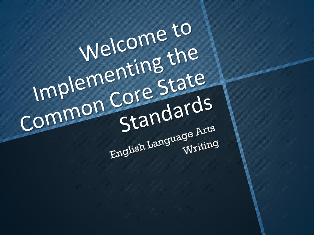 Welcome to Implementing the Common Core State Standards English Language Arts Writing