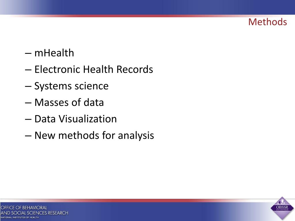 Theme 1: The Next Generation of Data and Analysis Methods • mHealth • Electronic Health Records • Systems science • Masses of data • Data Visualization • New methods for analysis
