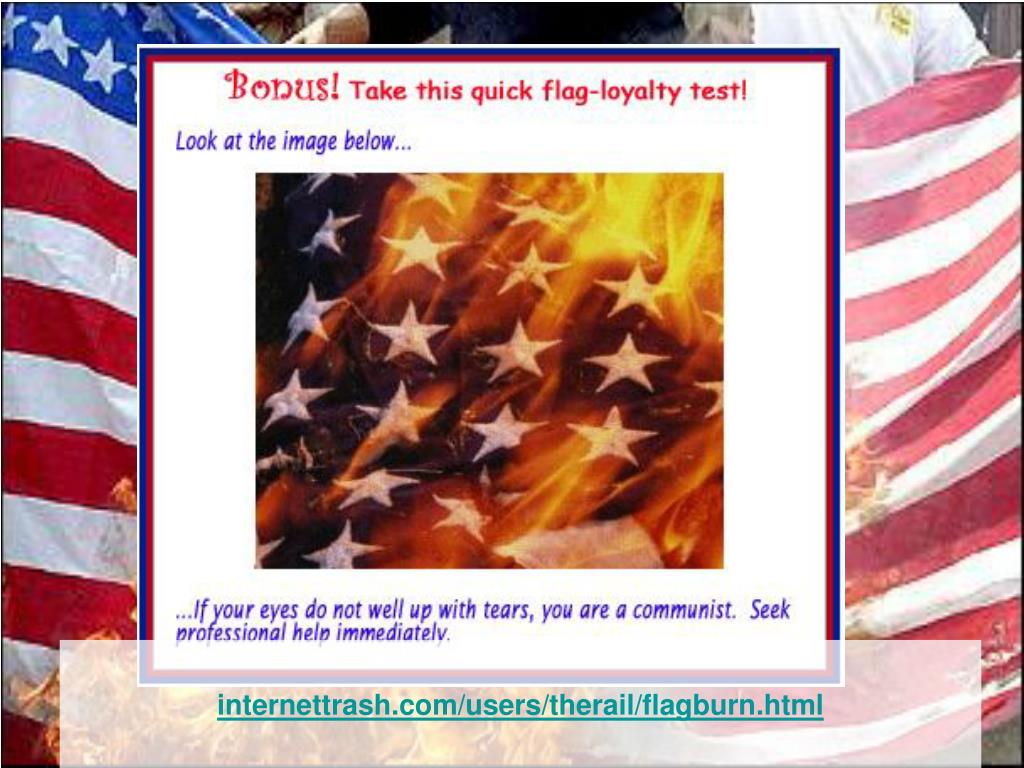 What is speech? 4 • Symbolic speech • Cannot claim protection for an illegal act on the grounds that it conveys a political message (example: burning a draft card) • Flag burning is protected speech (Texas v. Johnson)