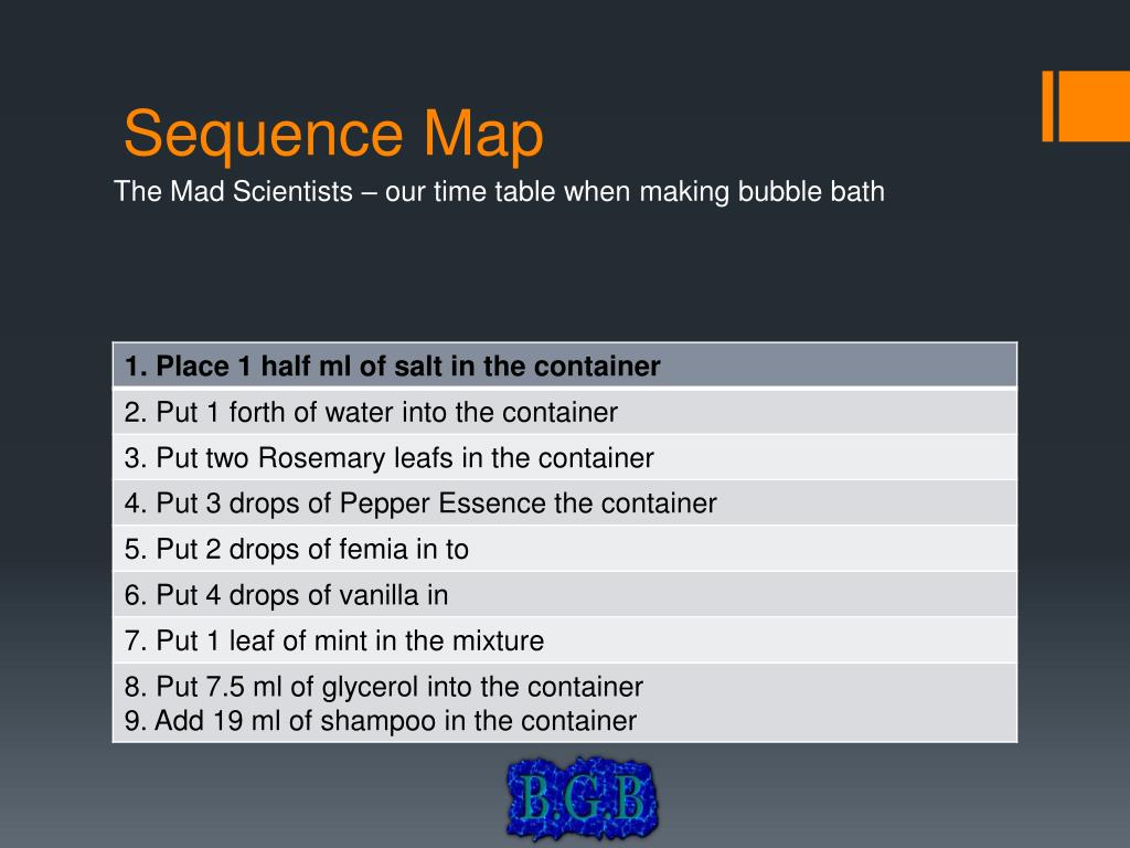 The Mad Scientists – our time table when making bubble bath Sequence Map