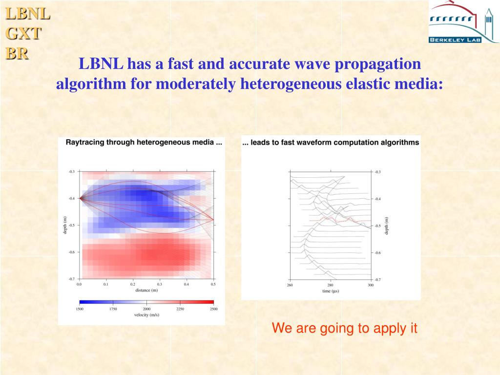 LBNL has a fast and accurate wave propagation algorithm for moderately heterogeneous elastic media: We are going to apply it
