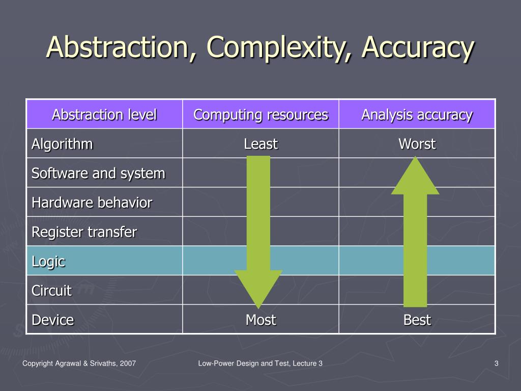 Abstraction, Complexity, Accuracy Low-Power Design and Test, Lecture 3