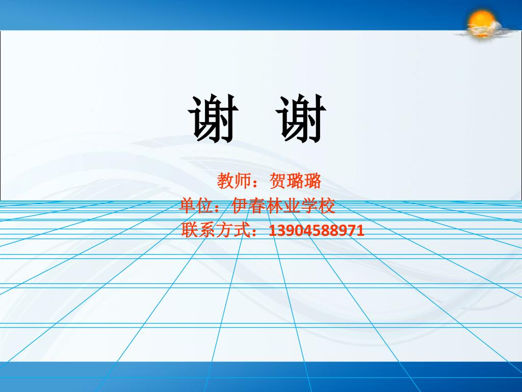 谢 谢 教师:贺璐璐 单位:伊春林业学校 联系方式:13904588971