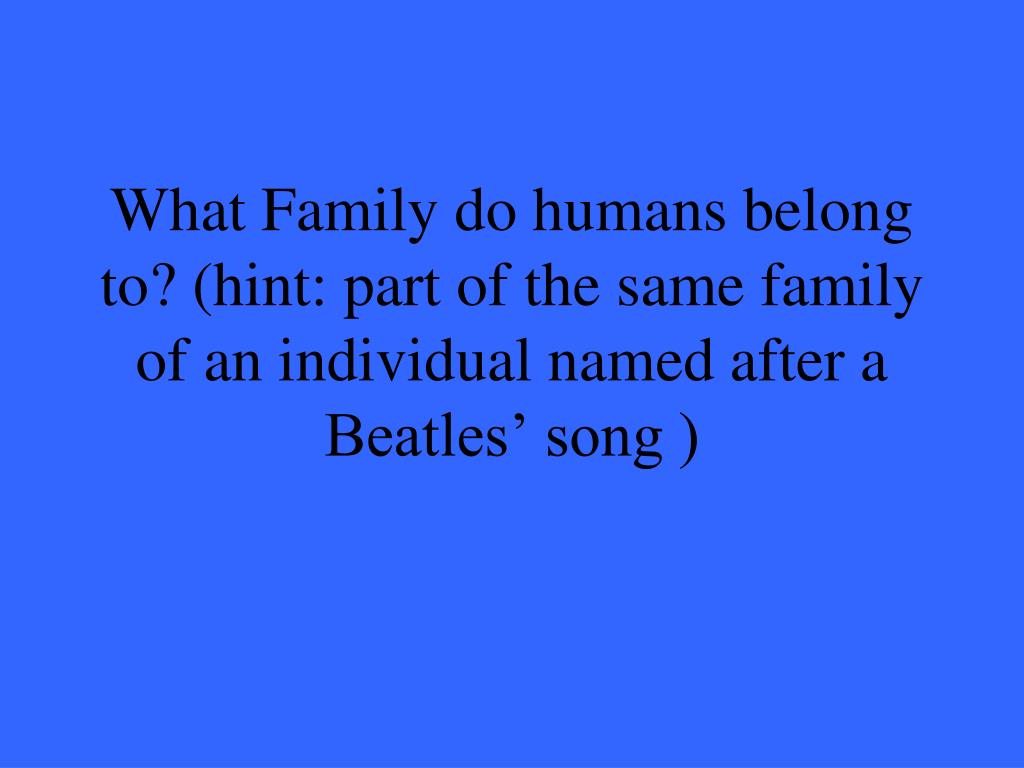 What Family do humans belong to? (hint: part of the same family of an individual named after a Beatles’ song )