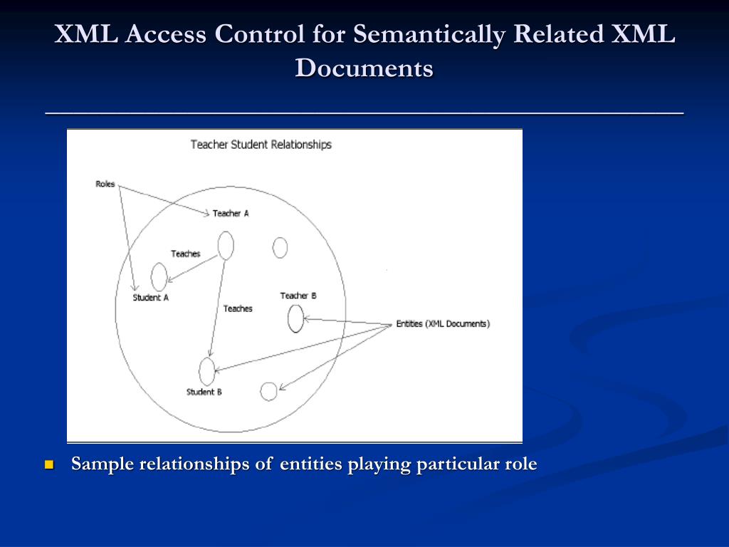 XML Access Control for Semantically Related XML Documents _____________________________________________ • Relationship between entities (XML documents)