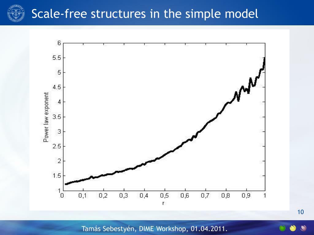 Is there a scale-free structure? • The value of r corresponding to a given empirical network can be derived with the network model presented above • Generate two reference networks with r=0 and r=1 which has the same size and average degree as the empirical network • Calculate the power-law exponent for the empirical and the two reference networks and use them to give the hypothetical r value of the empirical network: