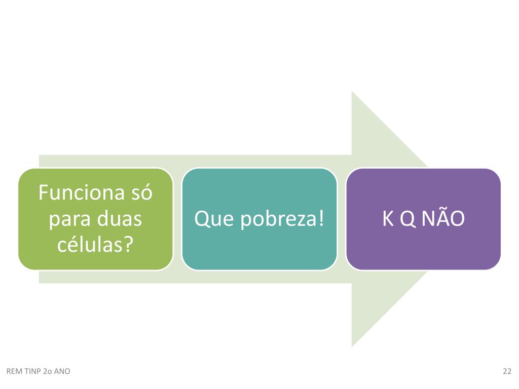 Outras Funcionalidades REM TINP 2o ANO Digitação e edição de dados em várias planilhas ao mesmo tempo Possibilidade de arrastar dados de uma planilha para outra Impressão horizontal e vertical da planilha Mesclagem de células na horizontal e vertical Formatação condicional através de caixas de diálogo Etc.