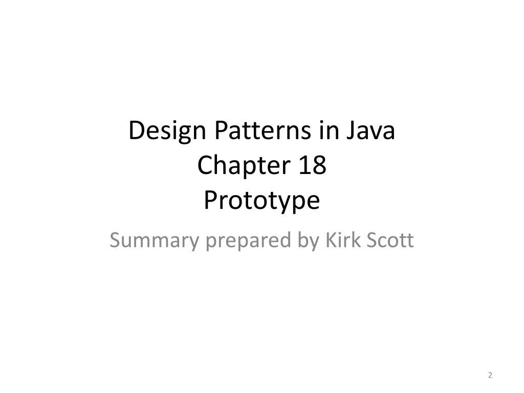 Design Patterns in JavaChapter 18Prototype Summary prepared by Kirk Scott