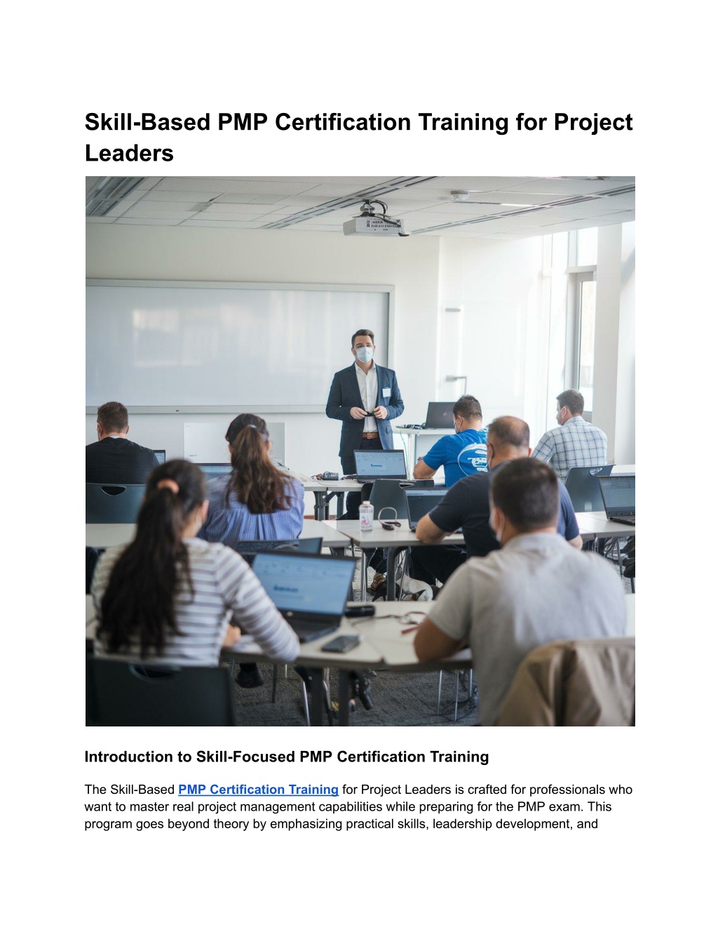 Skill-Based PMP Certification Training for Project Leaders Introduction to Skill-Focused PMP Certification Training The Skill-Based PMP Certification Training for Project Leaders is crafted for professionals who want to master real project management capabilities while preparing for the PMP exam. This program goes beyond theory by emphasizing practical skills, leadership development, and