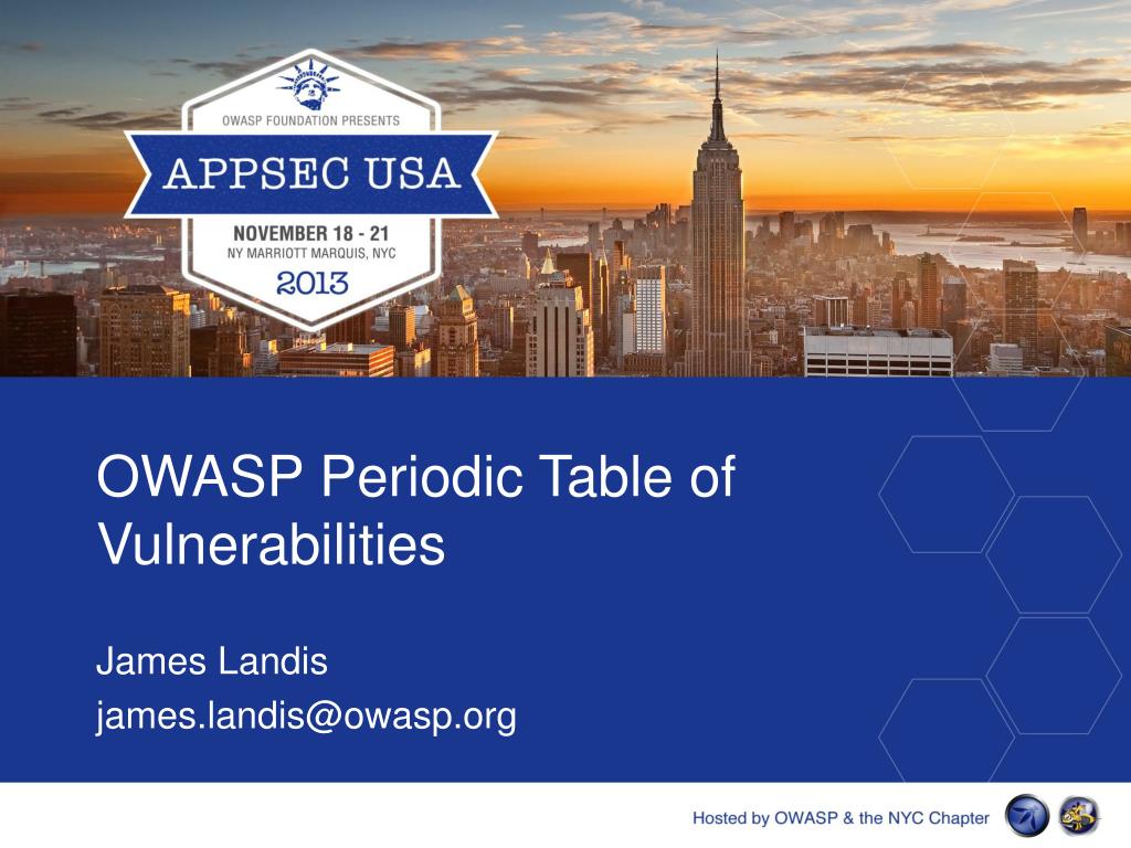 OWASP Periodic Table of Vulnerabilities James Landis james.landis@owasp.org