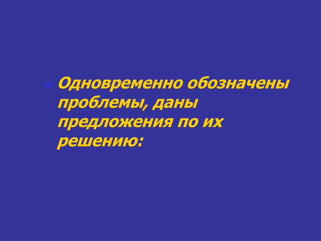 Одновременно обозначены проблемы, даны предложения по их решению: