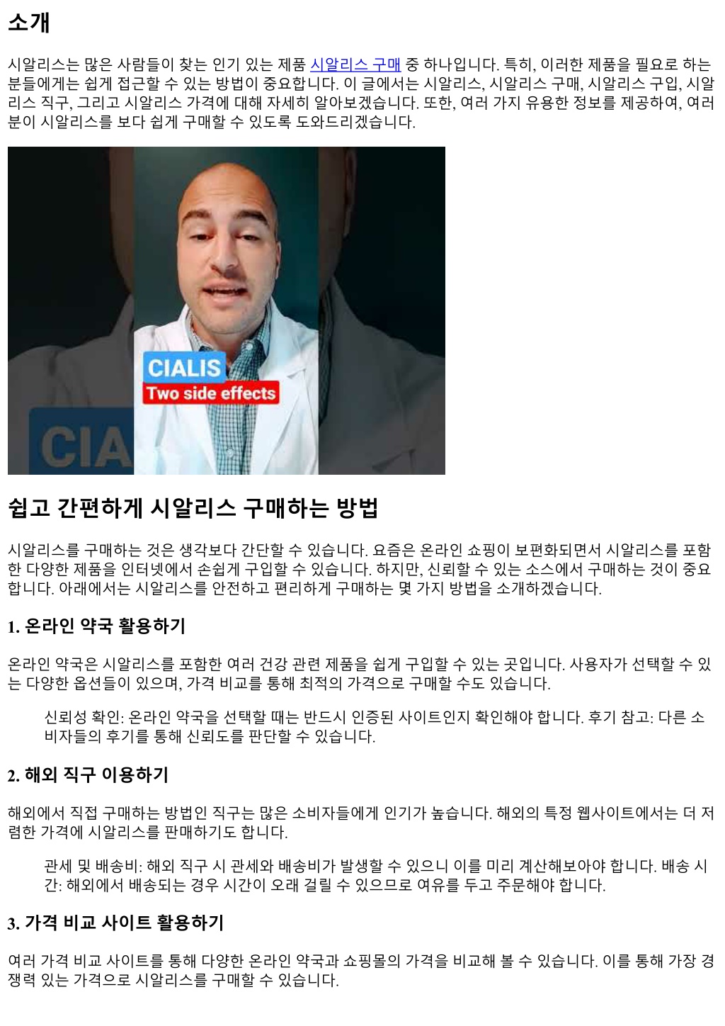 1. 소개 시알리스는많은사람들이찾는인기있는제품시알리스구매중하나입니다. 특히, 이러한제품을필요로하는 분들에게는쉽게접근할수있는방법이중요합니다. 이글에서는시알리스, 시알리스구매, 시알리스구입, 시알 리스직구, 그리고시알리스가격에대해자세히알아보겠습니다. 또한, 여러가지유용한정보를제공하여, 여러 분이시알리스를보다쉽게구매할수있도록도와드리겠습니다. 쉽고간편하게시알리스구매하는방법 시알리스를구매하는것은생각보다간단할수있습니다. 요즘은온라인쇼핑이보편화되면서시알리스를포함 한다양한제품을인터넷에서손쉽게구입할수있습니다. 하지만, 신뢰할수있는소스에서구매하는것이중요 합니다. 아래에서는시알리스를안전하고편리하게구매하는몇가지방법을소개하겠습니다. 1. 온라인약국활용하기 온라인약국은시알리스를포함한여러건강관련제품을쉽게구입할수있는곳입니다. 사용자가선택할수있 는다양한옵션들이있으며, 가격비교를통해최적의가격으로구매할수도있습니다. 신뢰성확인: 온라인약국을선택할때는반드시인증된사이트인지확인해야합니다. 후기참고: 다른소 비자들의후기를통해신뢰도를판단할수있습니다. 2. 해외직구이용하기 해외에서직접구매하는방법인직구는많은소비자들에게인기가높습니다. 해외의특정웹사이트에서는더저 렴한가격에시알리스를판매하기도합니다. 관세및배송비: 해외직구시관세와배송비가발생할수있으니이를미리계산해보아야합니다. 배송시 간: 해외에서배송되는경우시간이오래걸릴수있으므로여유를두고주문해야합니다. 3. 가격비교사이트활용하기 여러가격비교사이트를통해다양한온라인약국과쇼핑몰의가격을비교해볼수있습니다. 이를통해가장경 쟁력있는가격으로시알리스를구매할수있습니다.