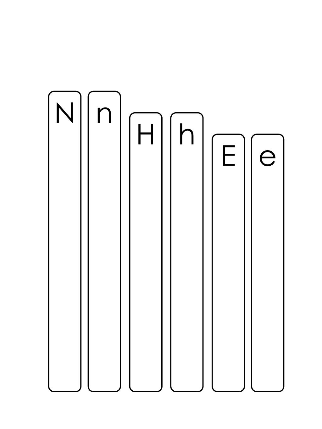 A. a. B. b. T. t. L. l. N. n. H. h. E. e.