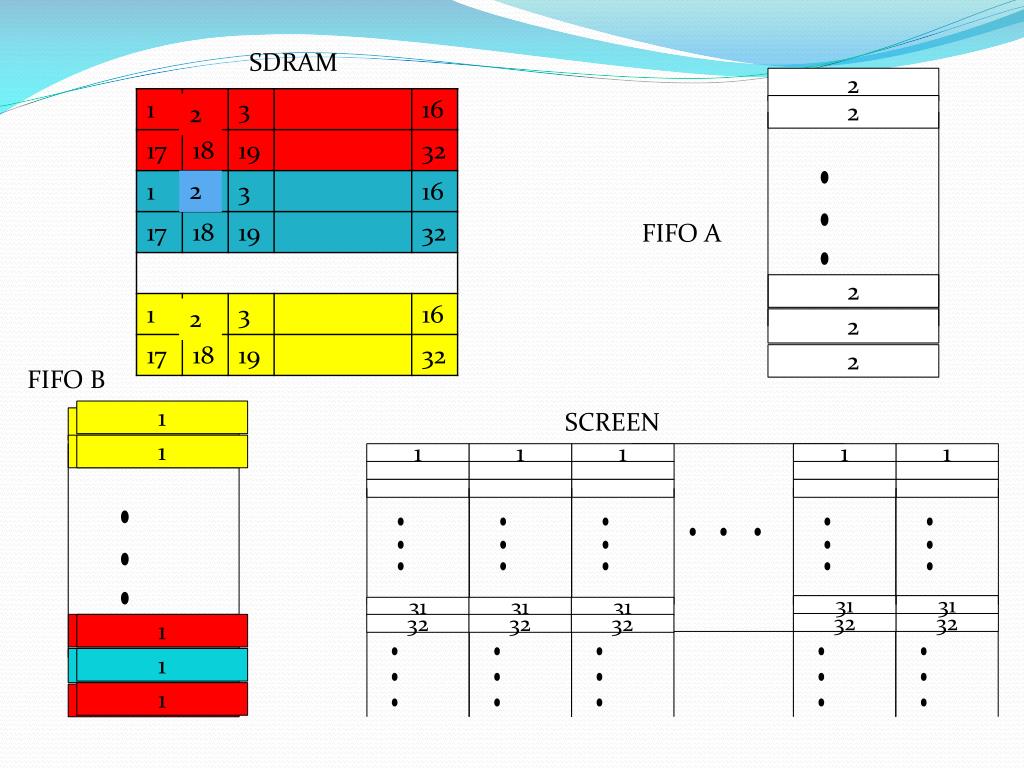 SDRAM 2 2 2 2 2 FIFO A 2 2 2 2 2 FIFO B 1 SCREEN 1 1 1 1 1 1 1 1 31 31 31 31 31 32 32 1 1 32 32 32 1 1 1 1