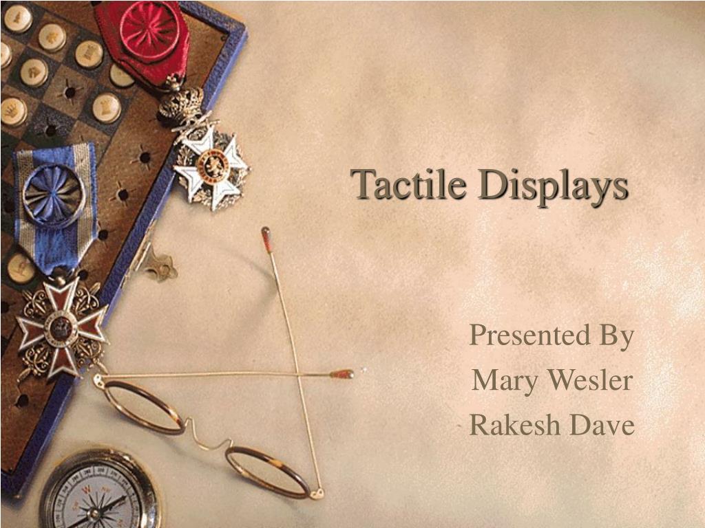 Tactile Displays Presented By Mary Wesler Rakesh Dave