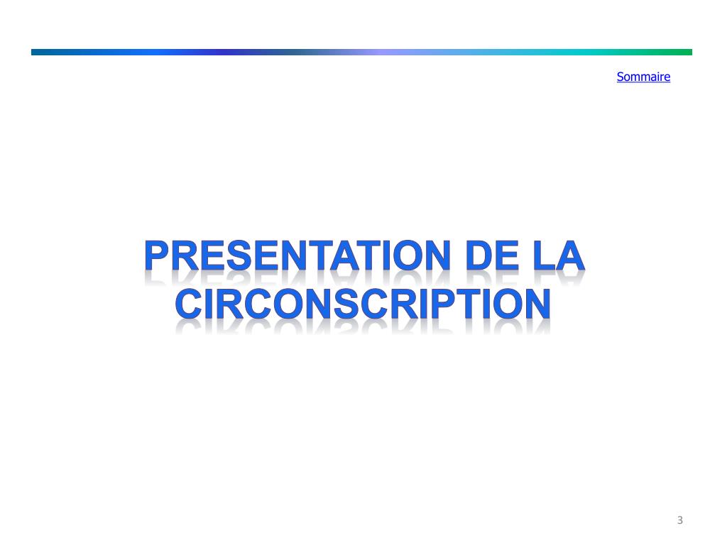Sommaire PRESENTATION DE LA CIRCONSCRIPTION