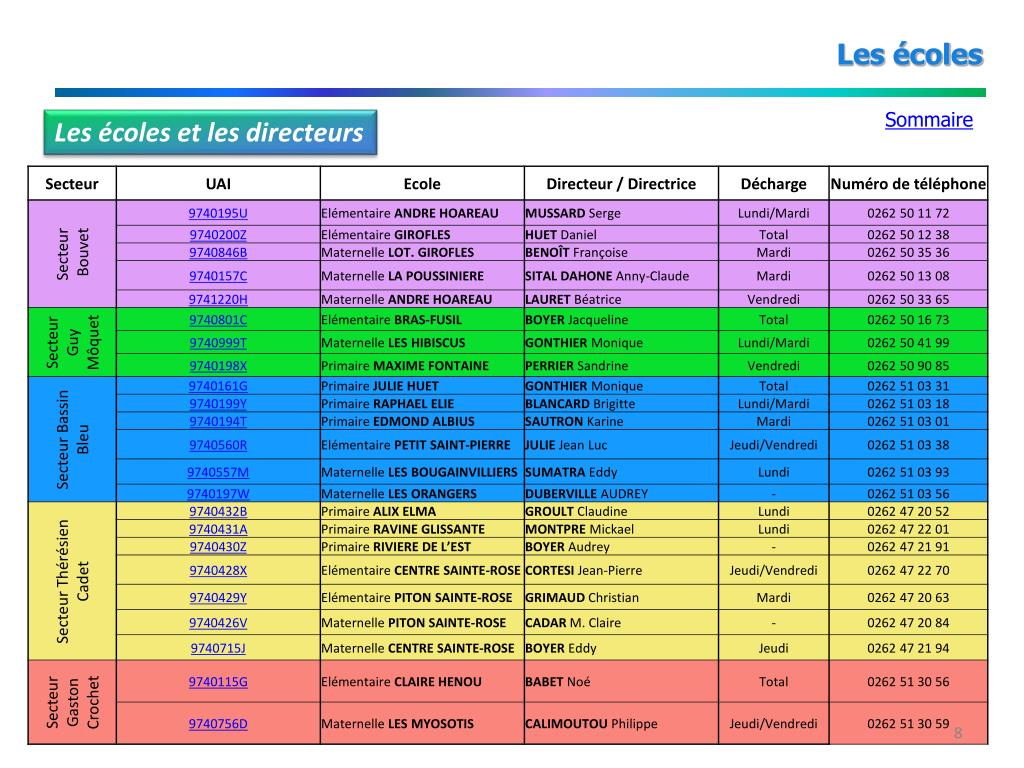 Les écoles Sommaire Les écoles et les directeurs